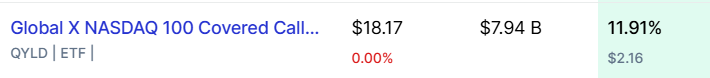 ( 현재 기준 QYLD의 배당이 11.91% 이기도 하고