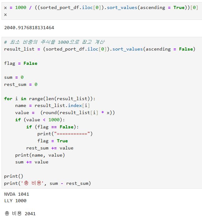 최소 비중의 주식을 기준으로